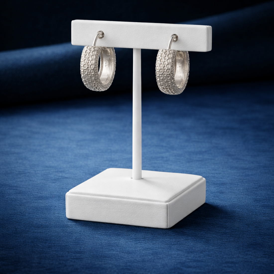 Elevate your everyday jewelry collection with these sophisticated textured huggie hoop earrings, meticulously crafted from high-quality sterling silver. These hoops feature a striking, honeycomb-inspired embossed pattern that catches the light from every angle, adding a modern, tactile dimension to a classic silhouette. Designed for both comfort and style, they boast a secure hinge-and-post closure that sits snugly against the earlobe, making them perfect for all-day wear or effortless layering with other studs. Whether you're dressing up for a formal event or adding a polished touch to a casual outfit, these versatile earrings offer a refined, contemporary aesthetic that never goes out of style.