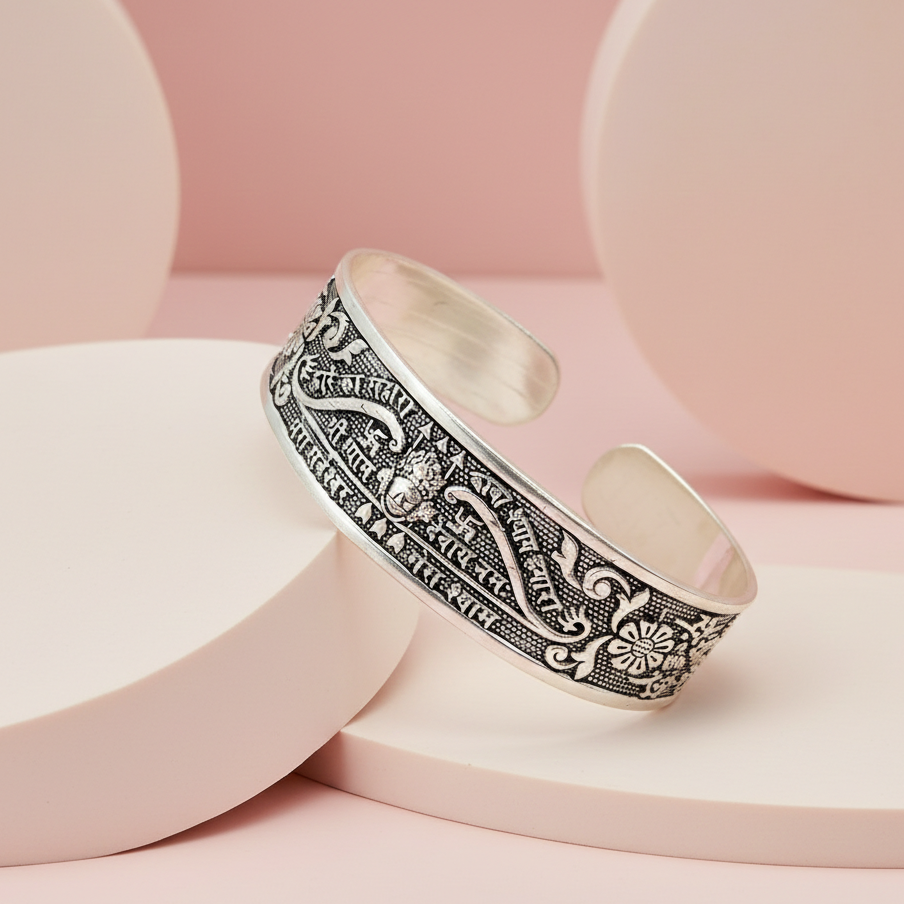 Embrace spiritual elegance with this exquisitely crafted Khatu Shyam Ji Oxidized Silver Kada, a perfect blend of faith and contemporary...