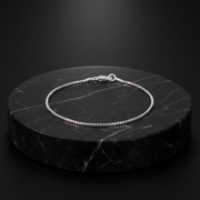 Elevate your everyday style with the refined elegance of this Sterling Silver Venetian Box Chain Bracelet. Meticulously crafted from high-quality sterling silver, this piece features the iconic geometric links of a box chain, offering a seamless blend of strength and sophisticated shine. The minimalist profile allows it to be worn as a delicate solo statement or layered effortlessly with your favorite watches and bangles. Resting on a luxurious dark marble base in this presentation, the bracelet’s high-polish finish catches the light with every movement, secured by a sturdy lobster claw clasp for comfortable, all-day wear. Timeless and versatile, it is the perfect understated accessory for the modern wardrobe.
