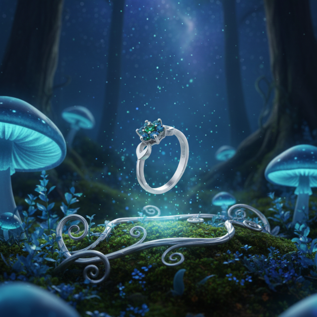 Elegant Silver Ring with Sapphire and Emerald Cluster