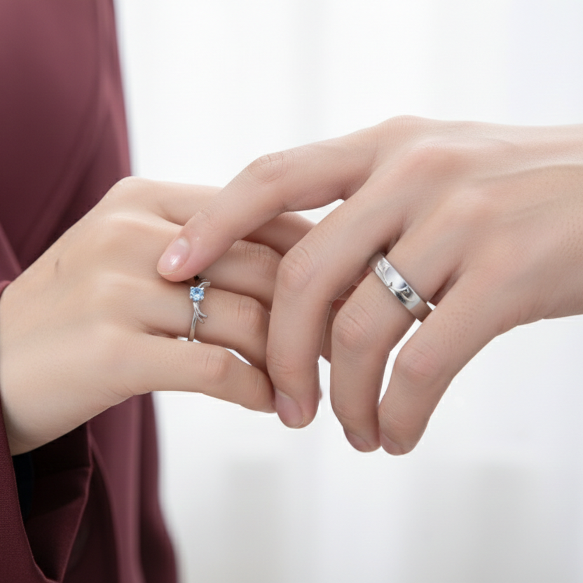 Embrace a love that is both wild and graceful with this exquisite Deer Antler Couple Ring Set. Crafted from premium sterling silver, these rings feature a unique woodland-inspired design where the antlers meet to symbolize a perfect union. The centerpiece is a stunning, vibrant blue sapphire-colored stone set in the feminine band, offering a brilliant pop of color against the polished silver finish. Designed with adjustable bands for a comfortable, custom fit, this set is the perfect choice for couples looking for a meaningful and elegant way to celebrate their unique bond.