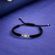 Silver Floral Charm Black Braided Adjustable Bracelet