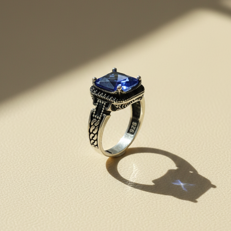 Exude timeless elegance with this masterfully crafted statement ring, featuring a vibrant blue sapphire-style center stone in a brilliant square cushion cut. The ring is forged from premium 925 sterling silver, hallmarked for authenticity, and showcases an intricate oxidized finish that highlights its vintage-inspired aesthetic. The band is adorned with a sophisticated braided Celtic knot motif, transitioning into a detailed milgrain bezel that securely cradles the gemstone with four polished prongs. Perfect for those who appreciate artisan craftsmanship and bold color, this ring serves as a striking accessory for formal occasions or a meaningful gift for someone special.